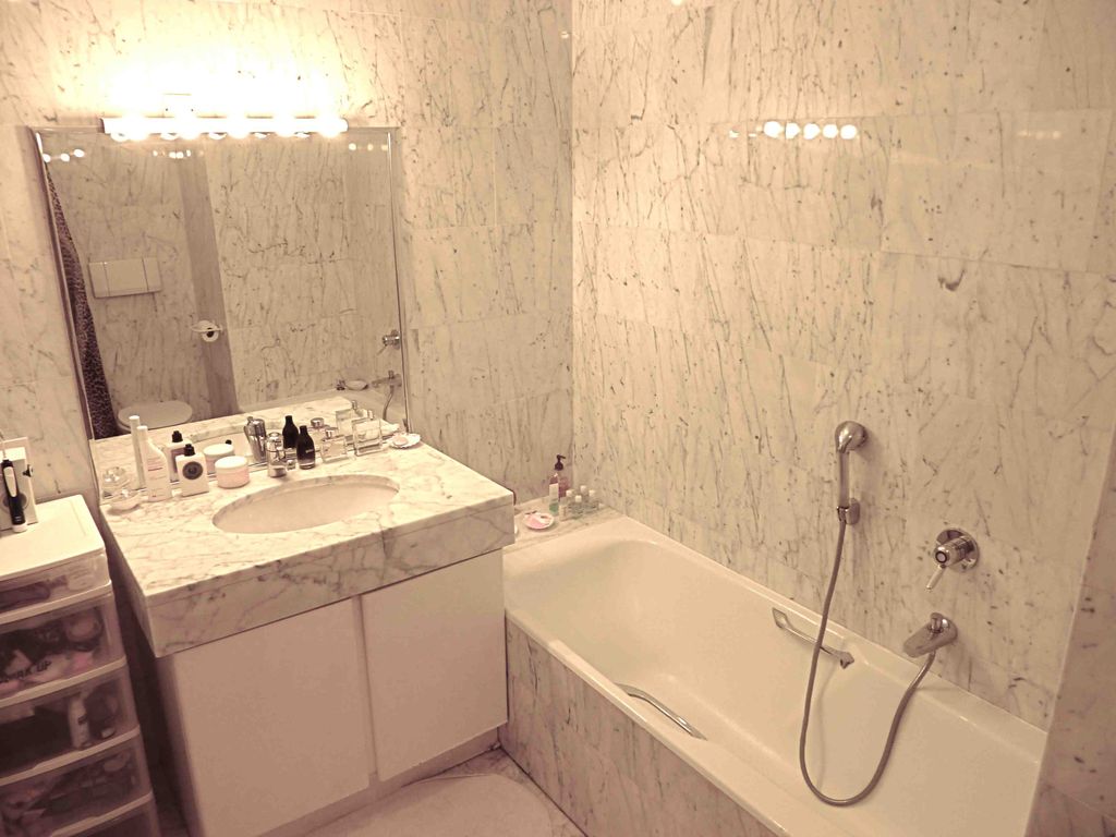 The 2 roomed 80m2 apartment (56m2 interior + 24m2 terrace) is situated in the luxurious 'Le Paradise' building, looking directly over the swimming pool, palm trees and the Mediterranean Sea. It is well-appointed with a fully equipped kitchen (including washing machine and dishwasher) a guest toilet with sink, a lounge with lounge suite and fold-out sofa bed, two office spaces, an entertainment centre with 52' flat screen TV and surround sound equipment, a bedroom with a 2nd flat screen TV, a queen-sized bed, and an en suite bathroom complete with bathtub and separate shower. There is a high-speed WIFI Internet connection that is free of charge for limitless usage.