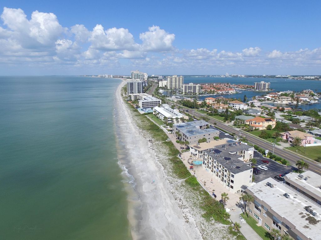 Join us in quiet Belleair Beach where you can relax in comfort in this one bedroom/one bathroom Gulf-front condo, updated with a new sleeper sofa. The bedroom boasts a comfortable Queen-size bed with a full length mirror and two nightstands. Porcelain tile wood flooring, white quartz counter tops, glass cook-top burner, and new white appliances adorn the eat-in kitchen. The condo is located on the bottom floor near the elevator and ramp for easy access to parking. Resting just 35ft from the unit is a heated pool, which faces the Gulf of Mexico--perfect for wearing the kids out after a long day of exploring Gulf Blvd. or simply relaxing. Feel free to utilize all we have to offer: Gulf beach frontage, usage of gas grills, lounge chairs, ice machine, and laundry on the 3rd floor.