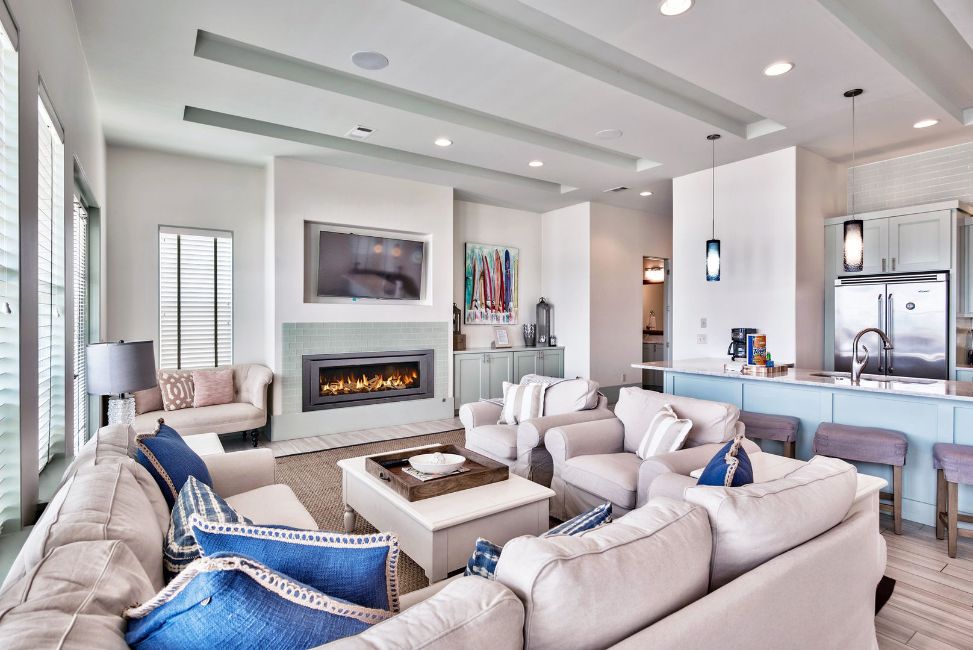 The second floor of the property plays host to the home’s open floor plan living area, the Master Suite, and a large gulf-front balcony. Gulf views can be taken in from the entirety of the open living area. The kitchen features top-of-the-line Dacor stainless steel appliances including a gas range. The formal dining area seats eight, while seating for four additional guests is available at barstools along the kitchen counter. The living room features ample seating, a fireplace, and a large 70" flat screen TV. Through two sets of French doors guests can access the second floor balcony that overlooks the sugar white sands and emerald waters!.