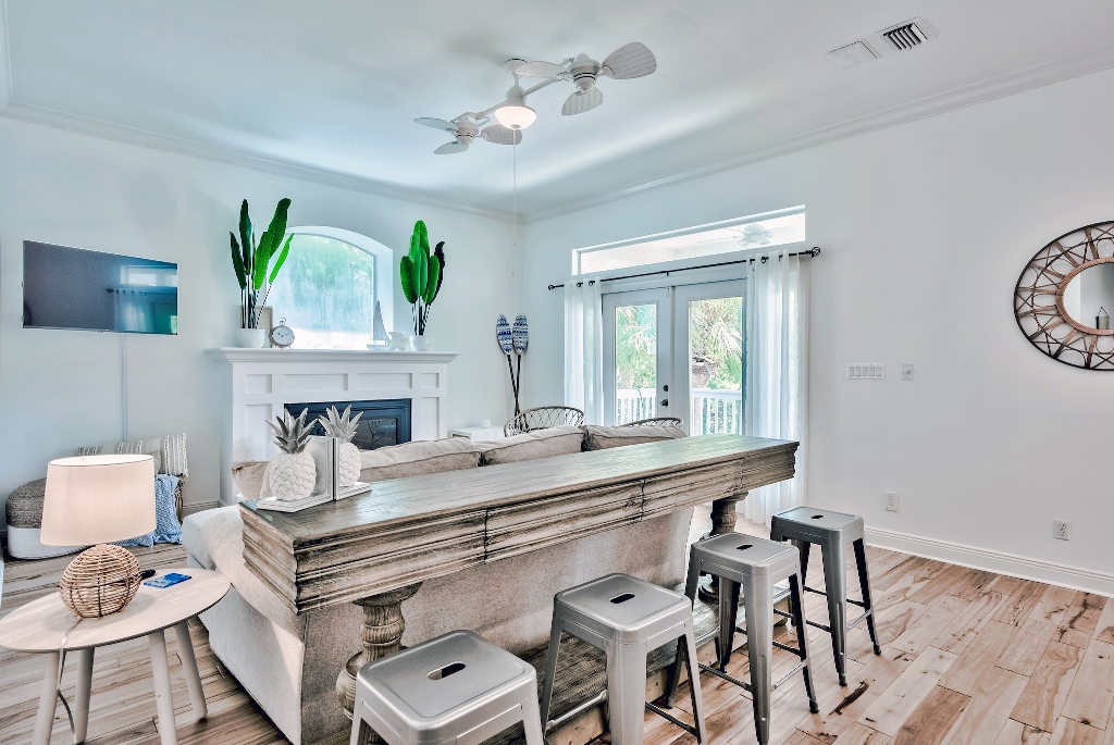 This charming beach home is situated on a large lot with gorgeous and mature tropical landscaping and privacy. Perfectly located right off 30A this home features incredible decks to take in the warm gulf breezes and relax. Coastal Luxury furniture give a calm and peaceful atmosphere and is the perfect home for either 1 or 2 families to come and relax in style or a golf or fishing excursion!