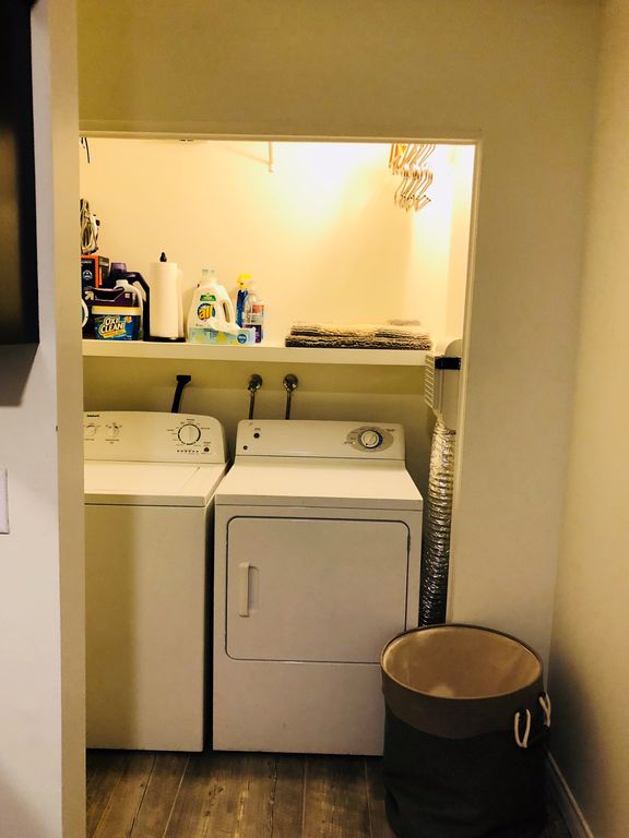 Home provides all linens and kitchen is stocked with condiments. Full kitchen with eating area, living room and bedroom.
